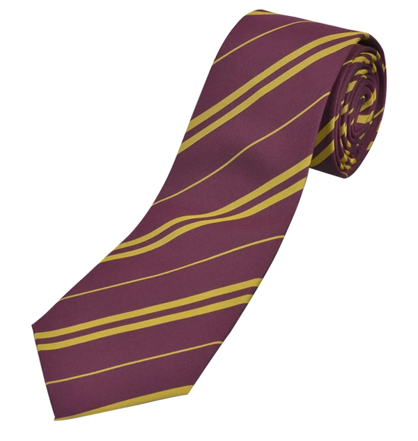 Made from 100% Silk, the tie features a scarlet and gold design in diagonal bands just like those worn by Hogwarts students in Harry Potter and the Prisoner of Azkaban.