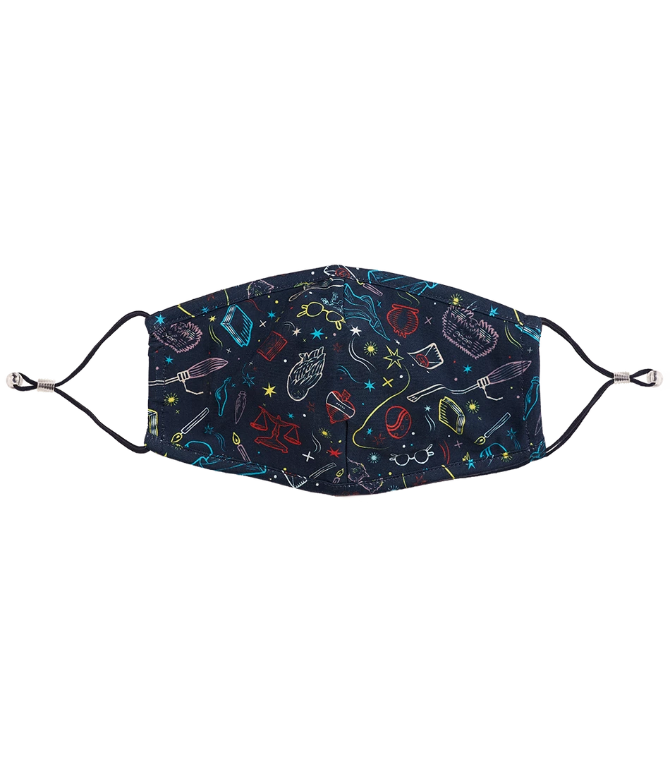 One mask includes a Marauder’s Map design on a black background, and the other is made up of bespoke designs of a broomstick, journal, and Harry Potter’s iconic glasses on a navy background. The masks include an adjuster and stopper, for a better and more comfortable fit.