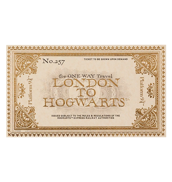 Take home your very own replica of the iconic Hogwarts Express Souvenir Ticket. The Hogwarts Express ticket is embellished with gold foil, and is based on the original artwork by MinaLima, the graphic duo, who designed all the original graphic elements for the Harry Potter films.