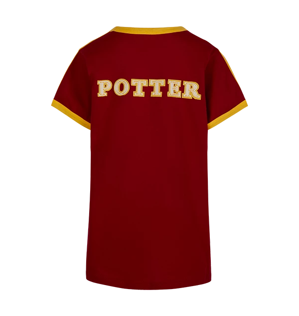 Celebrate your house pride with this athletic Kids Harry Potter Seeker Jersey. The t-shirt has been designed with scarlet red and yellow colouring, representing the traditional colours of the Gryffindor house. The t-shirt is complete with the number ‘07’ printed on the front in gold applique, and the name ‘Potter’ on the reverse.