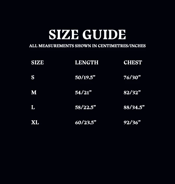 XS, S, M, L, XL