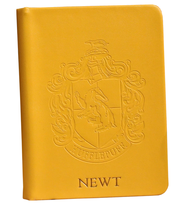 This personalised Hufflepuff notebook features the iconic Hufflepuff Crest embossed on a yellow faux-leather cover. A ribbon bookmark keeps your place and elastic closure keeps your book securely closed. Approximately 72 parchment-like textured sheets, dimensions 13cm W x 18 cm H x 1.5cm D.