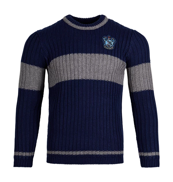 Cheer on your favourite Hogwarts house Quidditch team with this Ravenclaw Quidditch jumper. Featuring an embroidered Ravenclaw house crest patch on the left chest in the blue and silver colours of the house, this Quidditch sweater is a faithful celebration of the ones seen in the Harry Potter film series. This Ravenclaw Quidditch sweater is made from 100% super soft acrylic material and is machine washable.