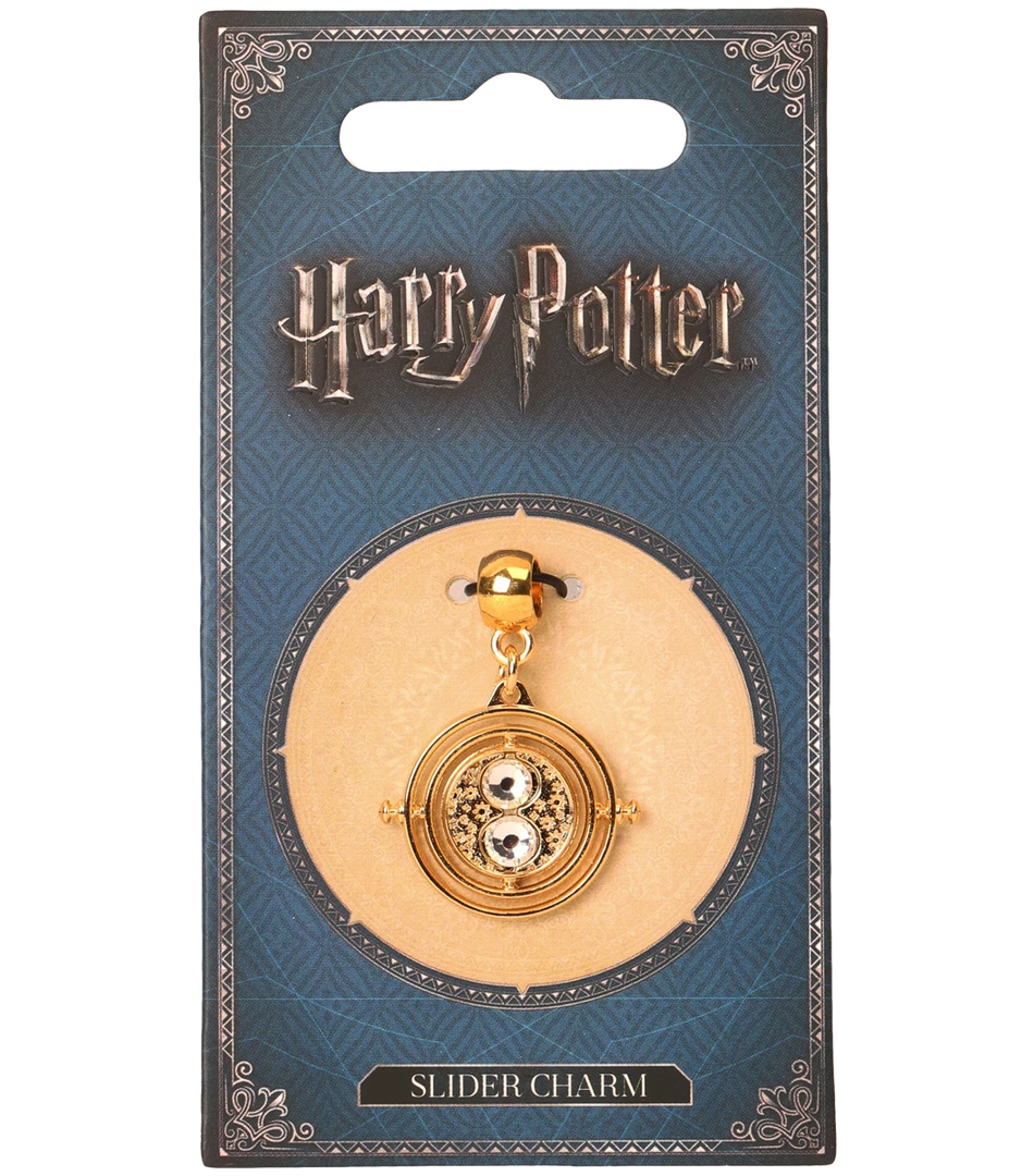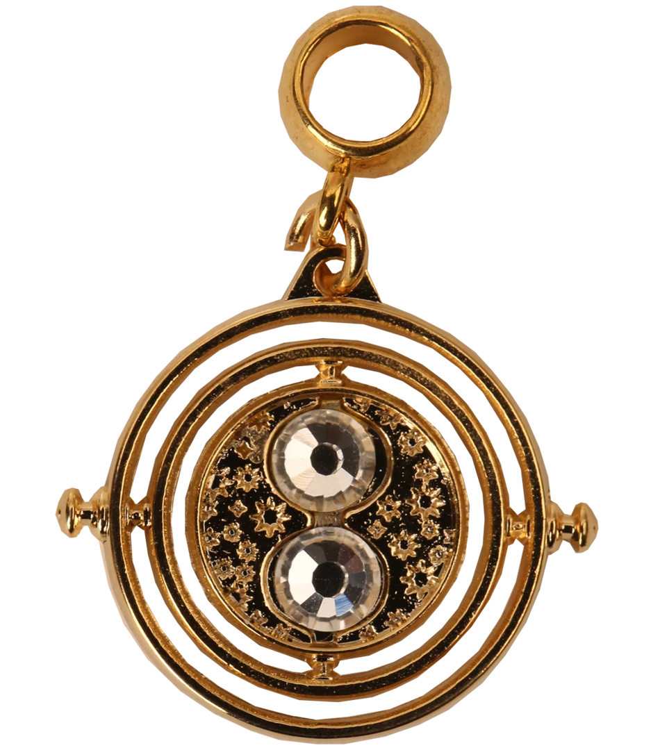 A beautiful slider charm featuring the Time-Turner. The charm features crystal details on the Time-Turner. Charm is approximately 2.5 x 2.5cm.